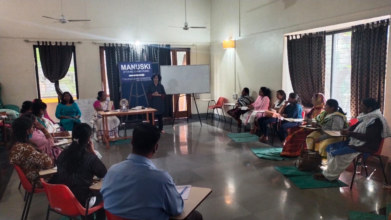 On 7th Jan 2022, Manuski organized a one-day Conference on “Women Leadership and Resource Mobilization”. Women Leaders from Mumbai, Kolhapur, Sangali, and Pune participated in the conference along with a few male activists. Ms. Manjula Pradeep, Campaign Director of DHRDNet, and Founder of NCWL was a special guest for the program and guided participants about the origin human and status of women in society from the ancient period. Moreover, she explained various aspects required for Women’s Leadership Development.
